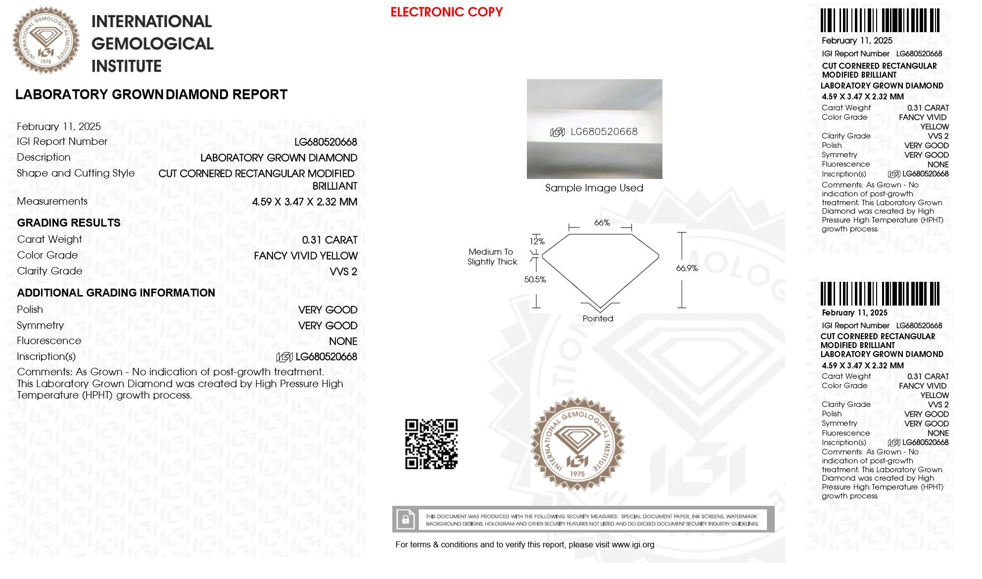 .31 Carats Lab Grown YELLOW Diamond Loose VVS2 | (IGI Cert)