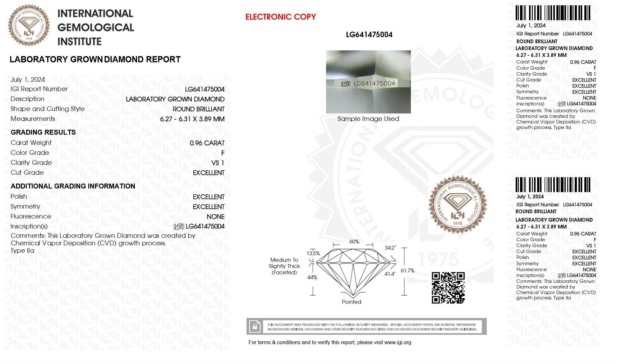 One (1) Round Brilliant Cut Laboratory Grown Diamond