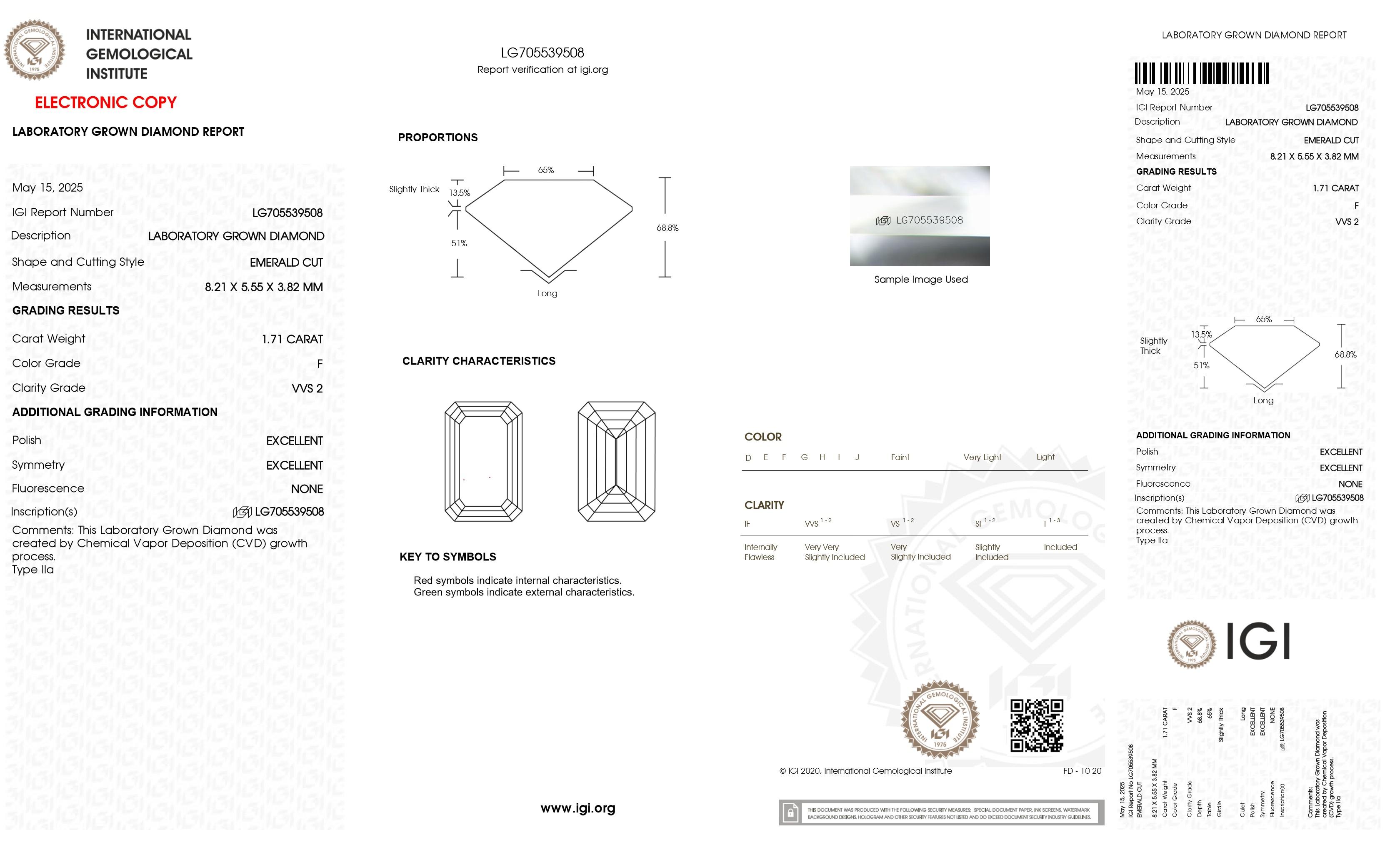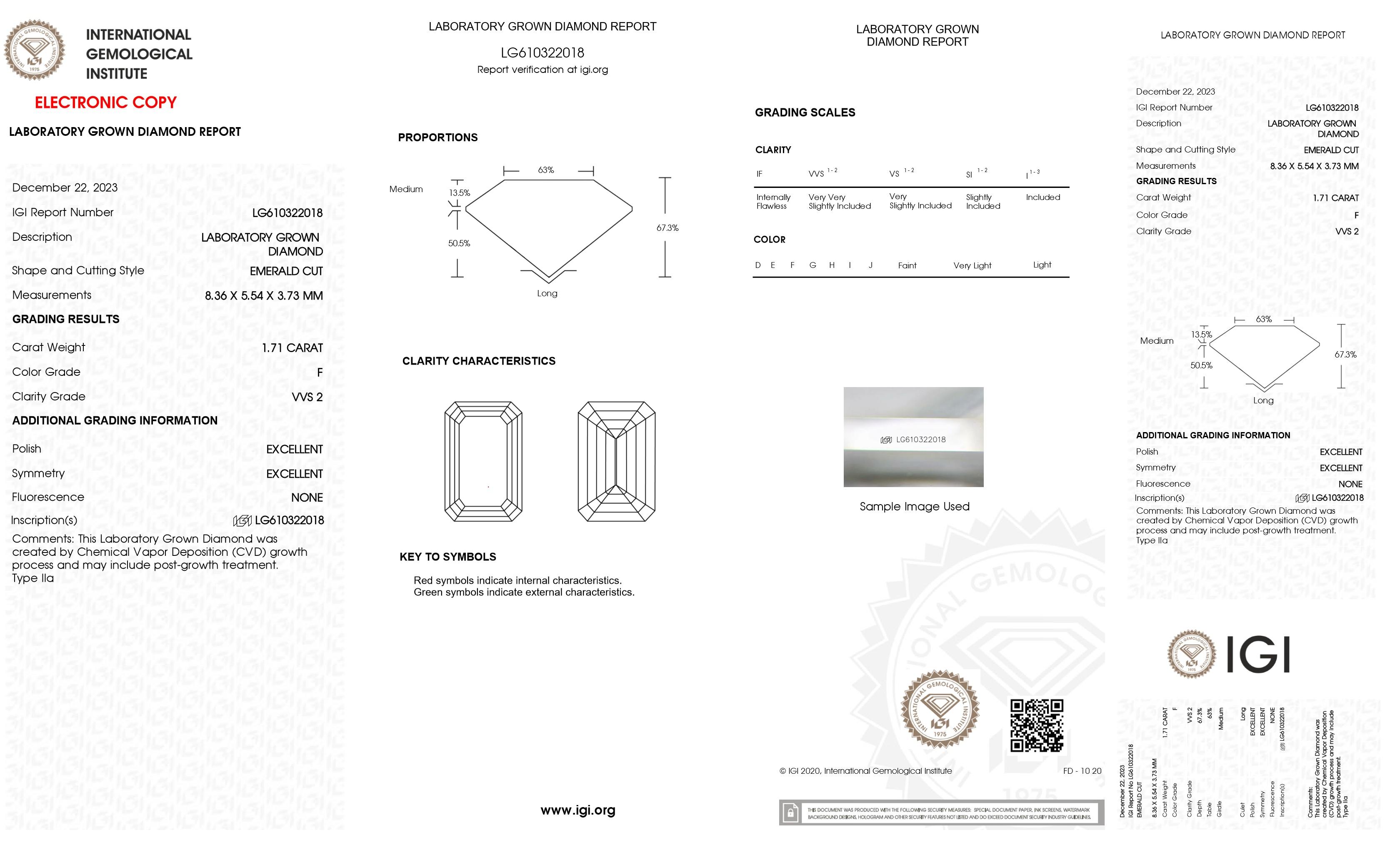 The diamonds feature precision laser inscriptions with the IGI certificate numbers, ensuring authenticity and traceability.