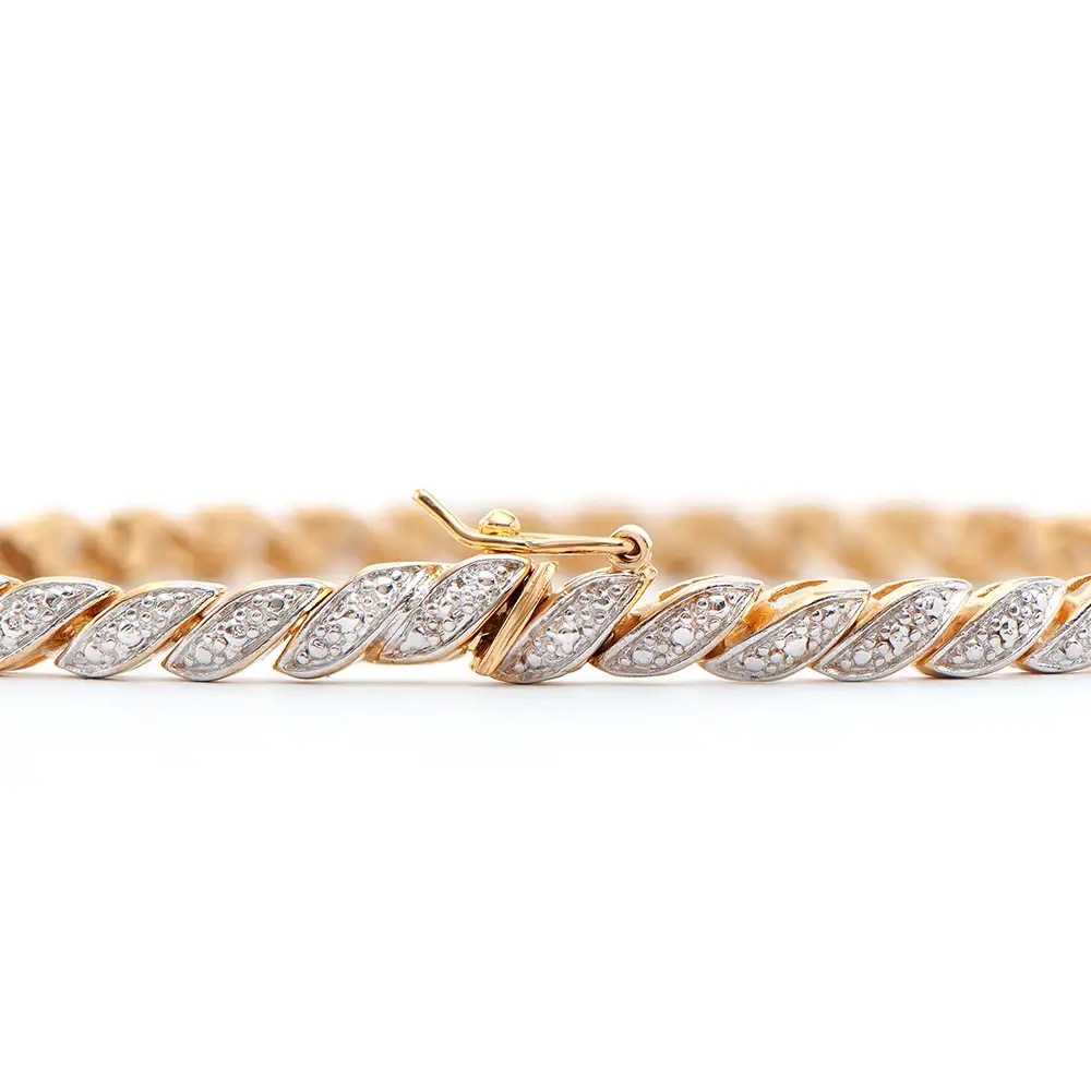 0.22 CTW Natural Diamonds 18K Gold Plated Designer Bracelet Size 8 Inches (10.25 grams) Contains: