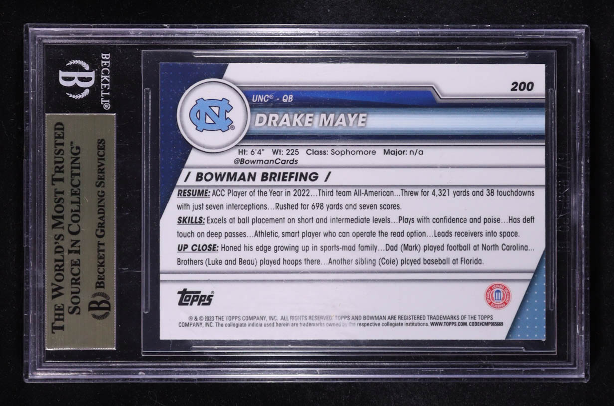 Drake Maye 2023 Bowman Chrome University #200 RC (BGS 9.5)