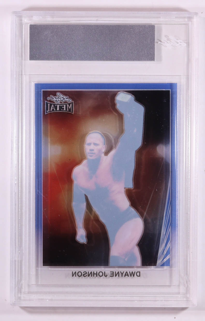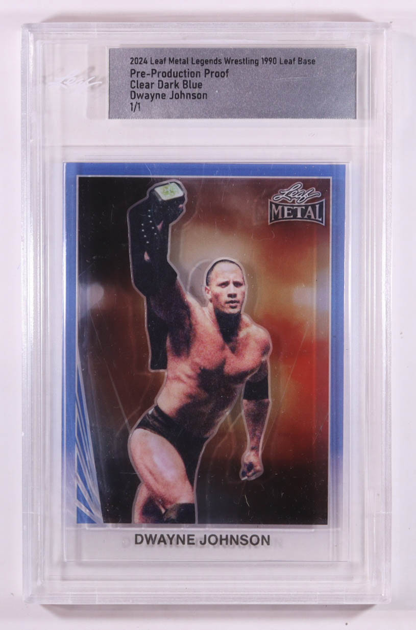 Dwayne Johnson 2024 Leaf Metal Legends Wrestling 1990 Leaf Base Clear Dark Blue Pre-Production Proof Clear #1/1