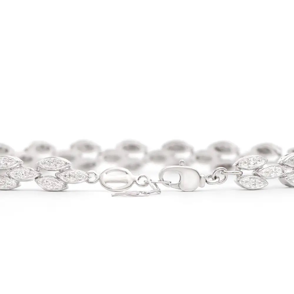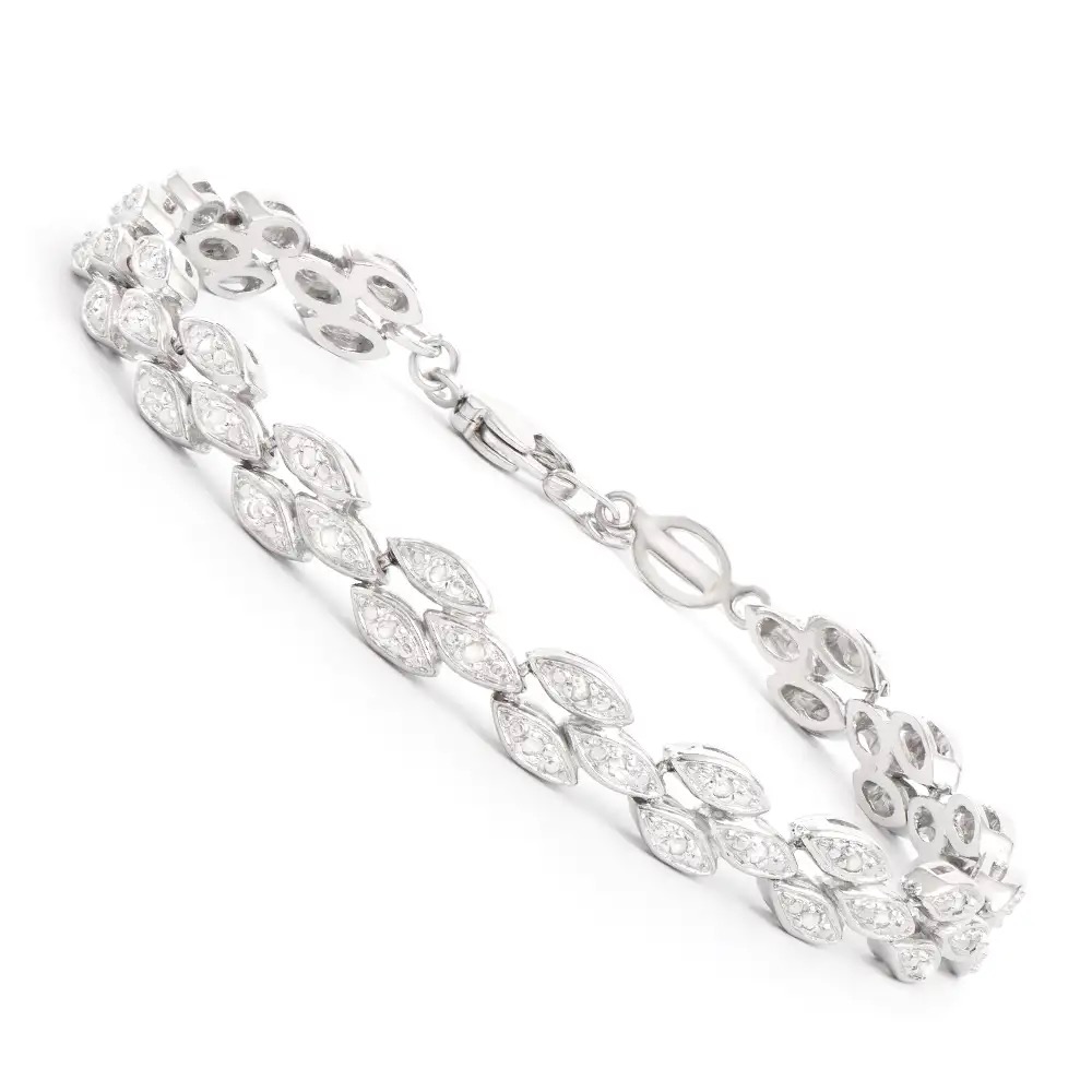 0.21 CTW Natural Diamond Rhodium Plated Designer Bracelet Size 7.5 Inches (11.25 grams) Contains:
