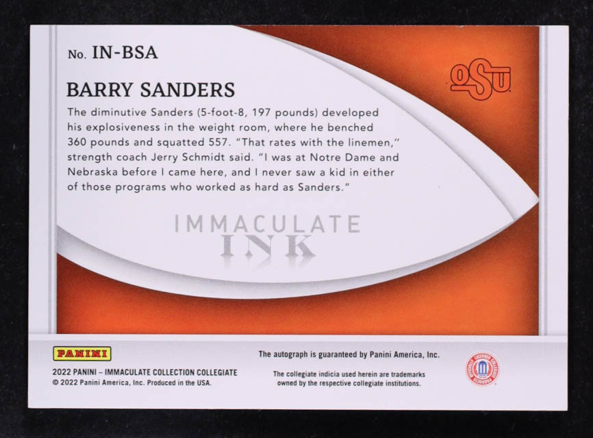 Barry Sanders 2022 Immaculate Collection Collegiate Immaculate Ink #3 #08/49