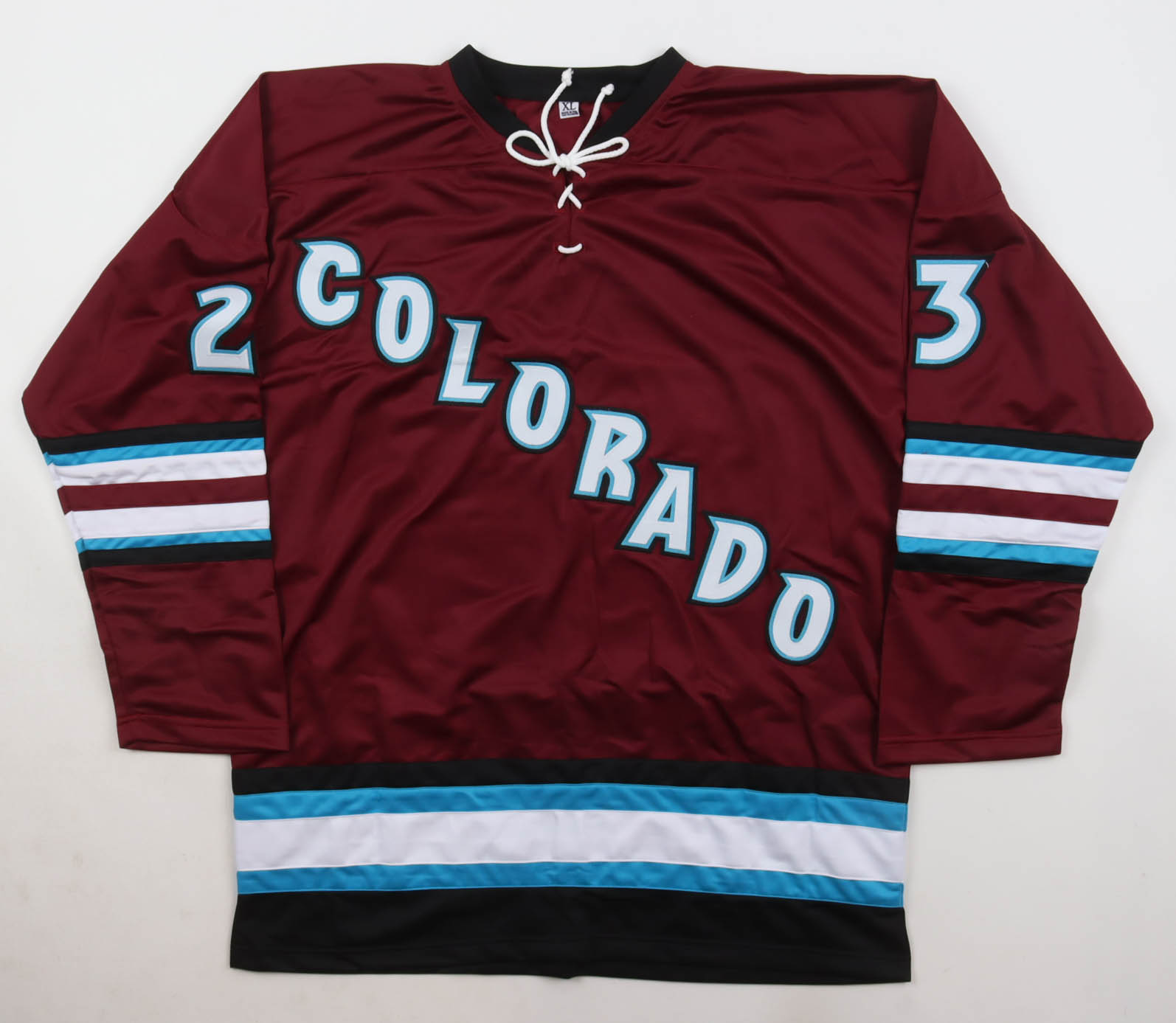 Custom jersey with everything sewn on, size XL. Hand-signed by Milan Hejduk (Colorado Avalanche).