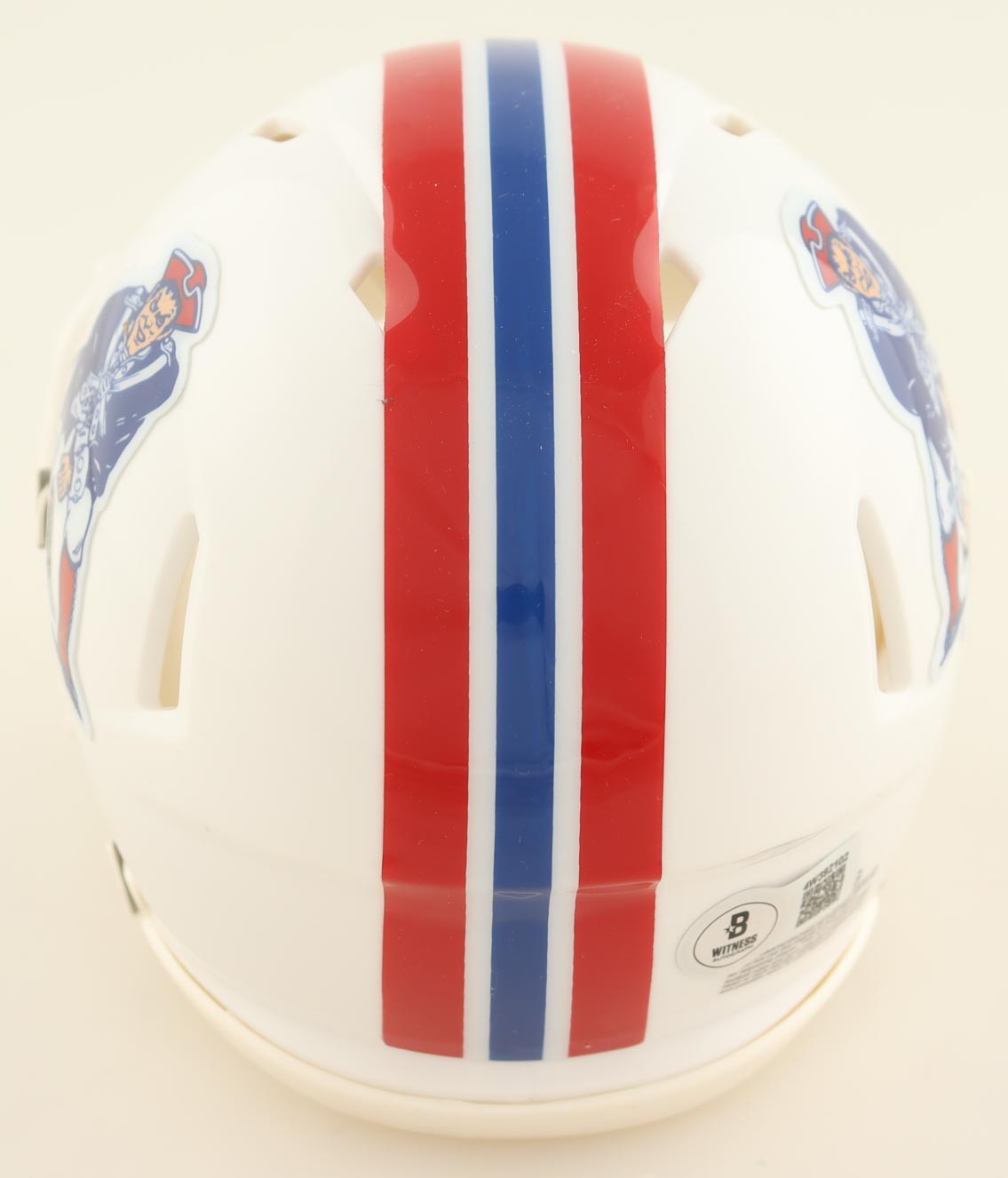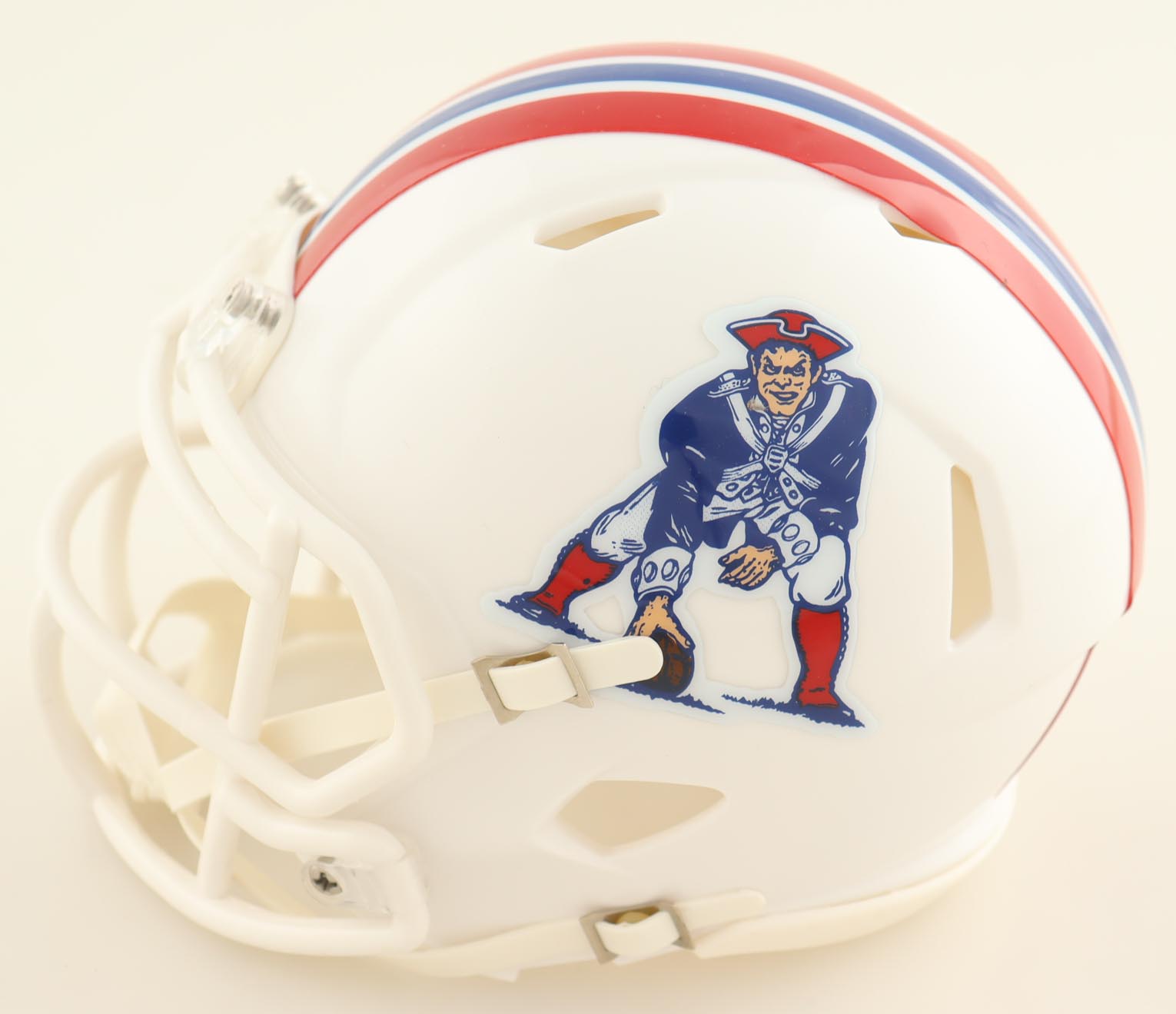 Riddell New England Patrios Throwback speed mini helmet has been hand-signed by Kayshon Boutte.