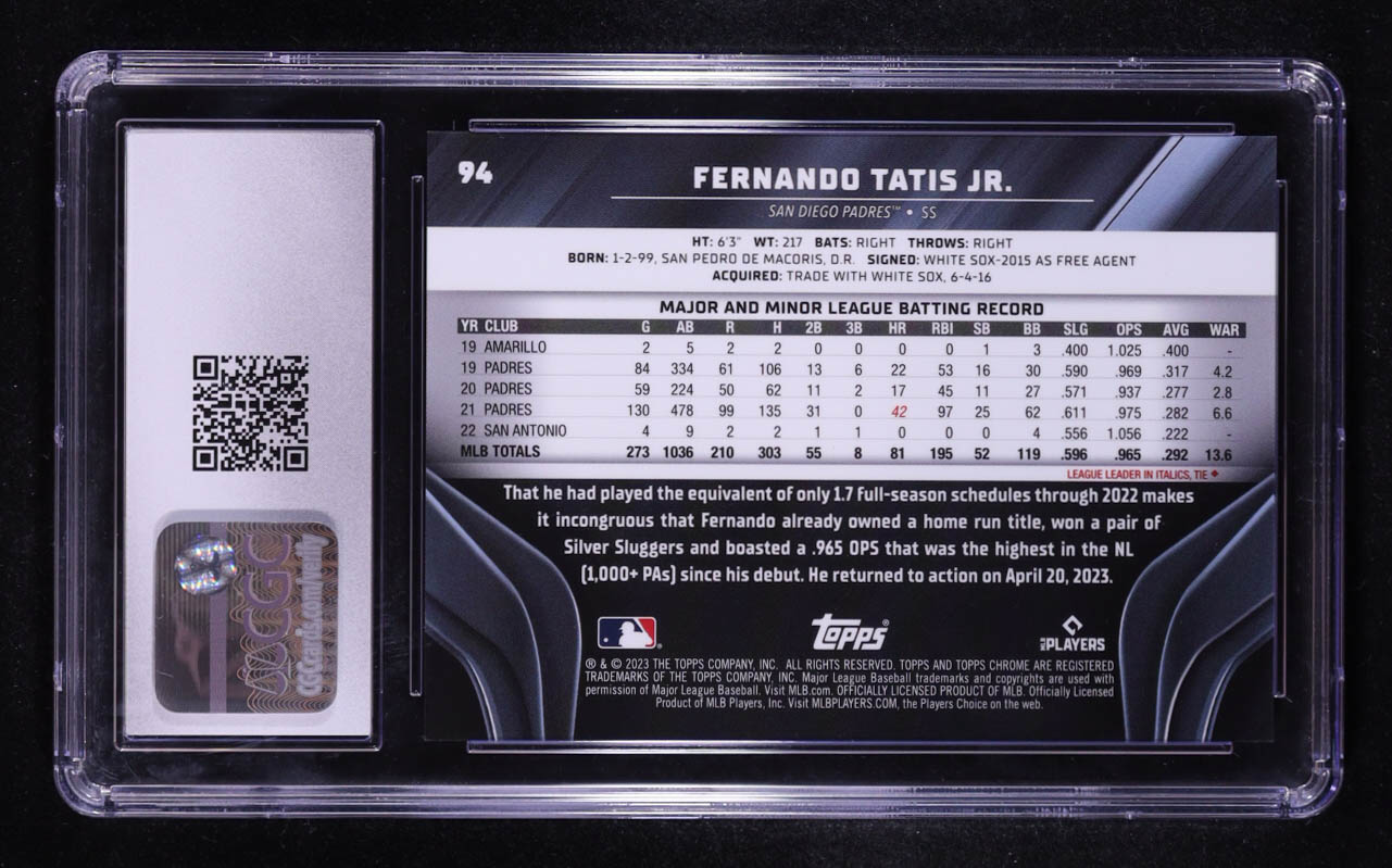 Fernando Tatis Jr. 2023 Topps Chrome Black Green Refractors #94 #56/99 (CGC 9)