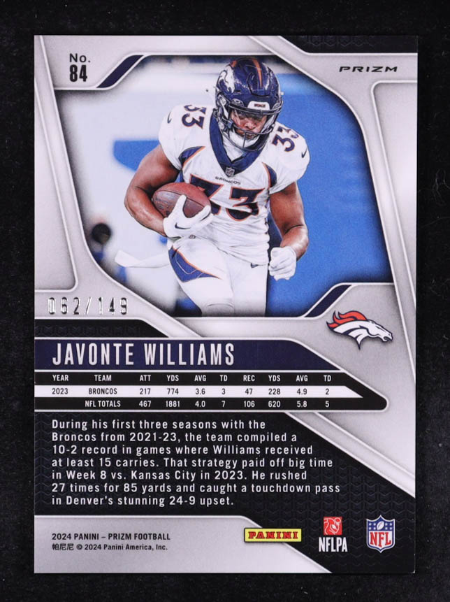 Javonte Williams 2024 Panini Prizm Prizms Red Wave #84 #062/149