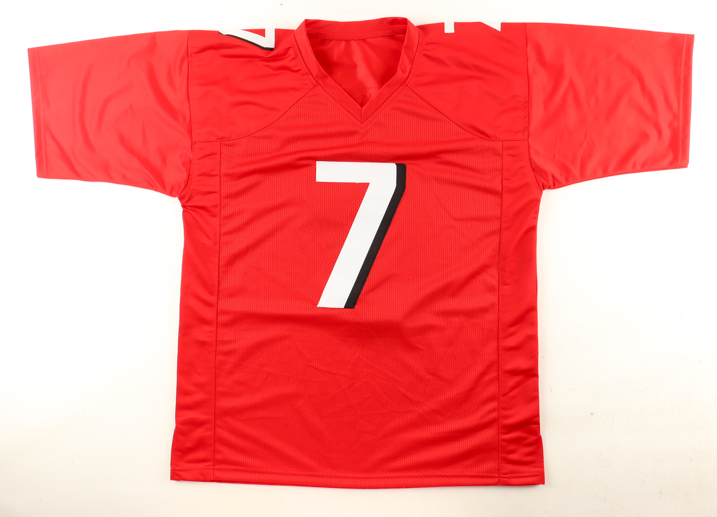 Custom jersey with everything sewn on, size XL. Hand-signed by Bijan Robinson.