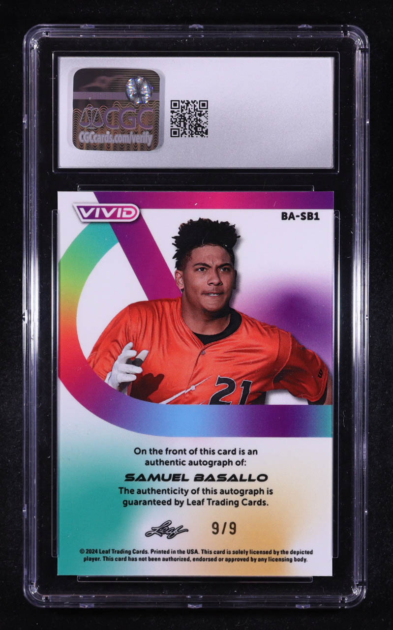 Samuel Basallo 2024 Leaf Metal Autographs Lava Purple #BASB1 #9/9 RC (CGC 9 | Auto Grade CGC 9)