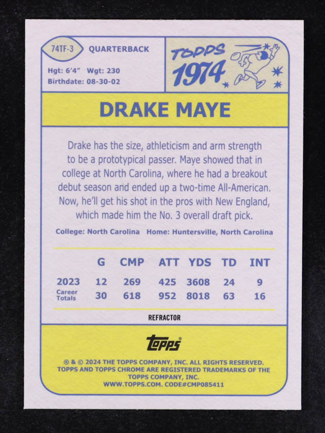 Drake Maye 2024 Topps Chrome '74 Topps Refactors #74TF3 RC