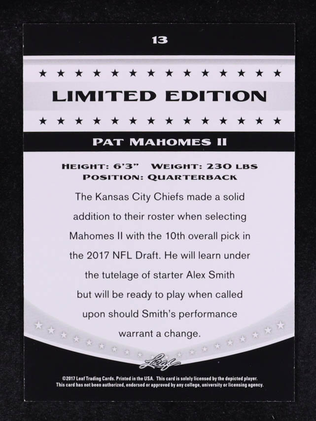 Patrick Mahomes II 2017 Leaf Special Release Limited Edition #13 RC