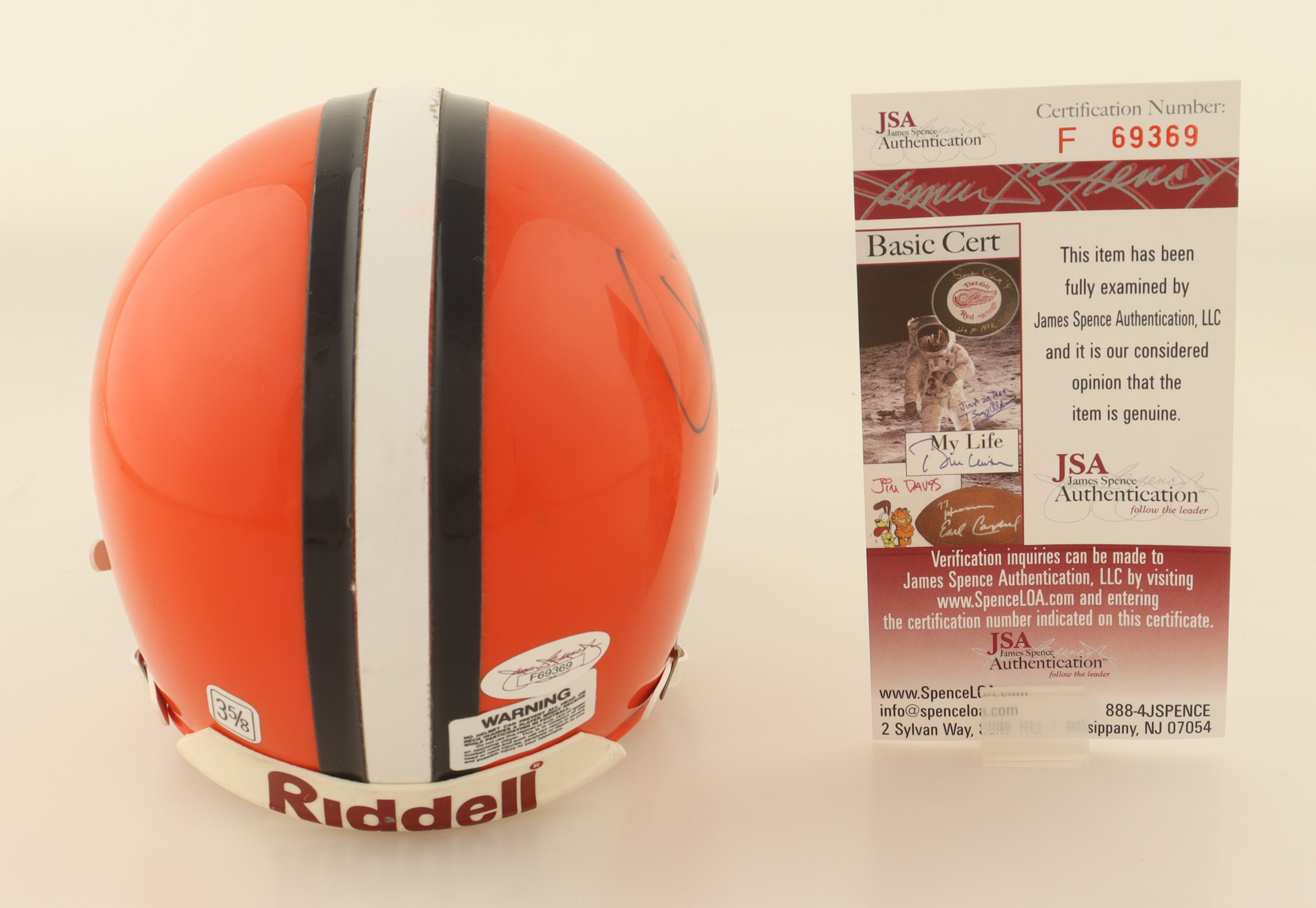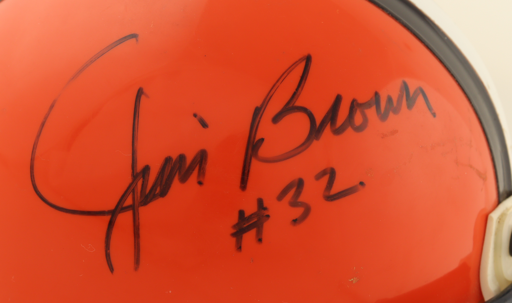 Riddell Cleveland Browns 75-05 speed mini helmet has been hand-signed by Jim Brown (HOF).