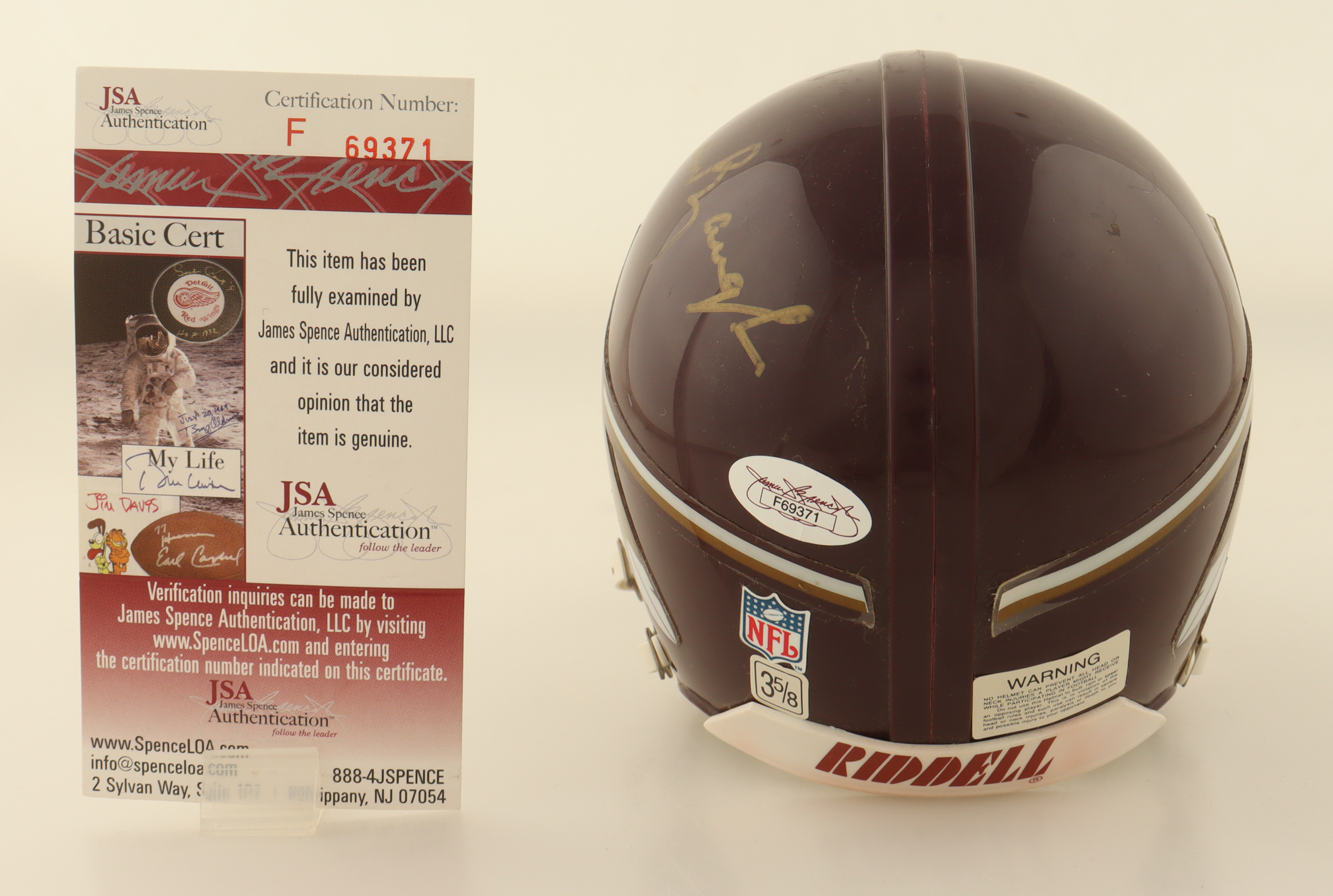Riddell Washington Redskins mini helmet. Hand-signed by Sammy Baugh (D. 2008, HOF).