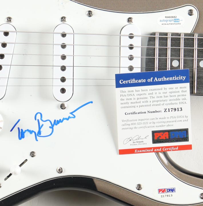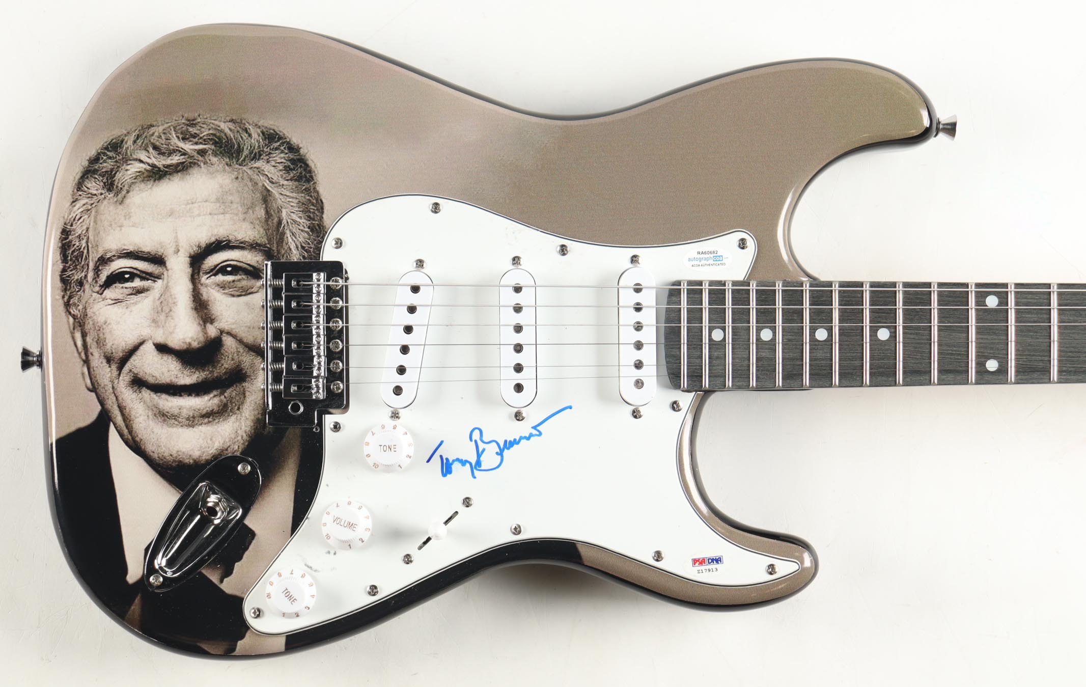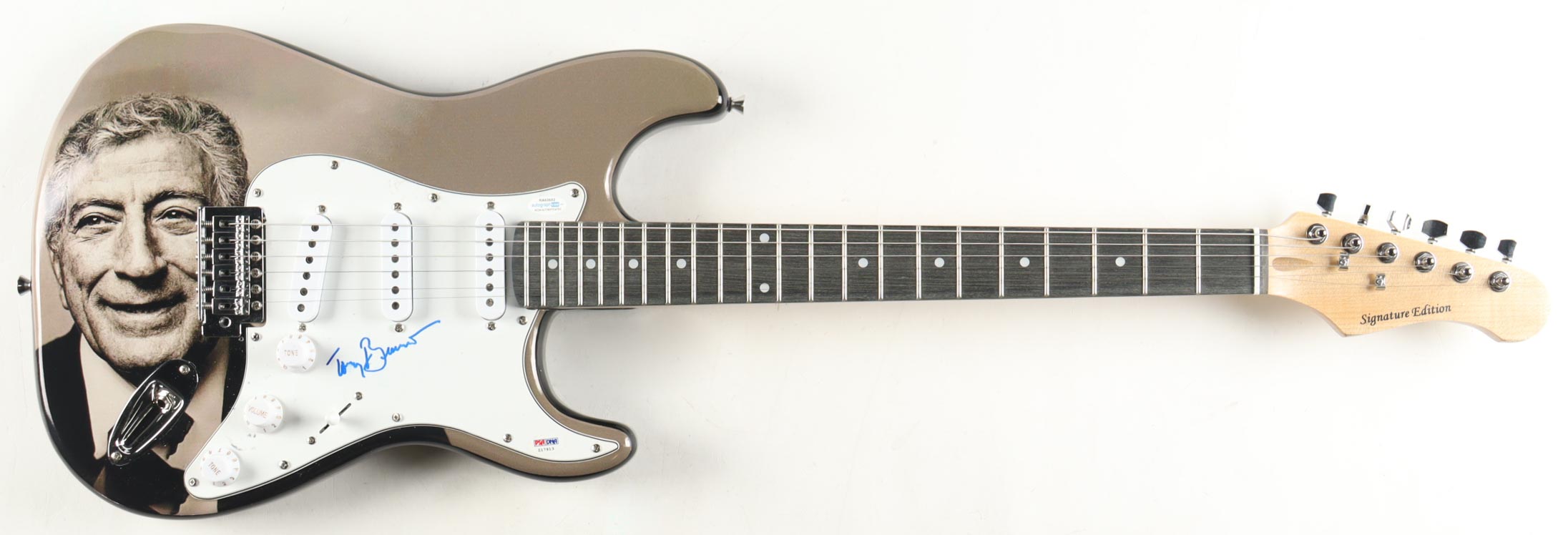 Custom Autograph Edition style electric guitar measures approximately 39" in length and has been hand-signed on the pickguard by Tony Bennett (D. 2023, HOF).