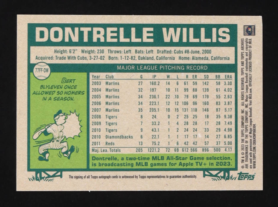 Dontrelle Willis 2023 Topps Archives '77 Fan Favorites Autographs #77FFDW