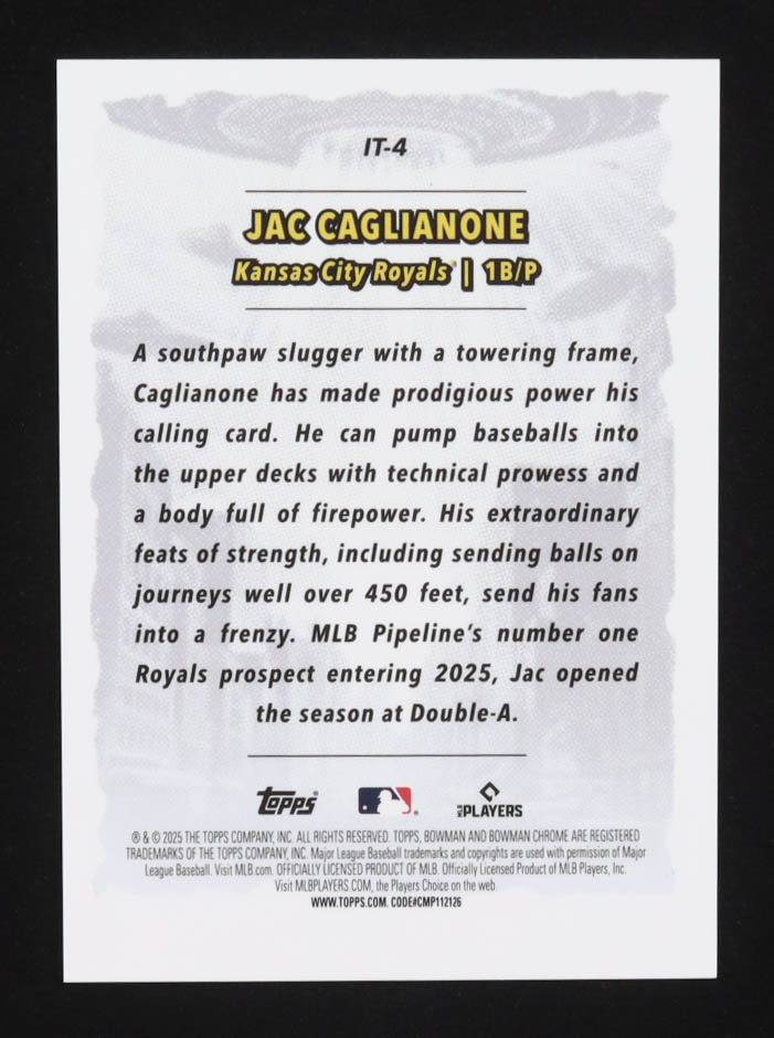 Jac Caglianone 2025 Bowman Chrome It Came to the League Mini-Diamond Refractors #IT4 #104/150 RC
