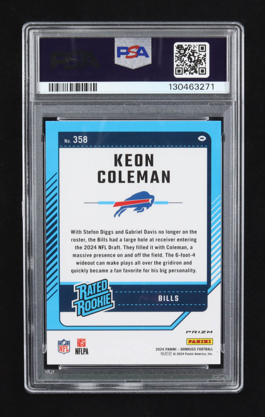 Keon Coleman 2024 Panini Donruss Optic Preview Pink RR #358 RC (PSA 8)