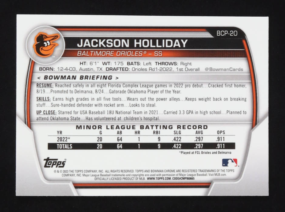 Jackson Holliday 2025 Topps Archives Signature Series Active Jackson Holliday #TBA #09/50