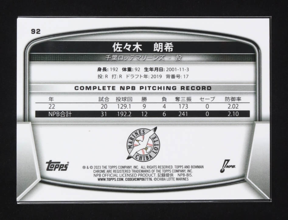 Roki Sasaki 2023 Bowman Chrome NPB Green Refractors #92 #94/99 RC