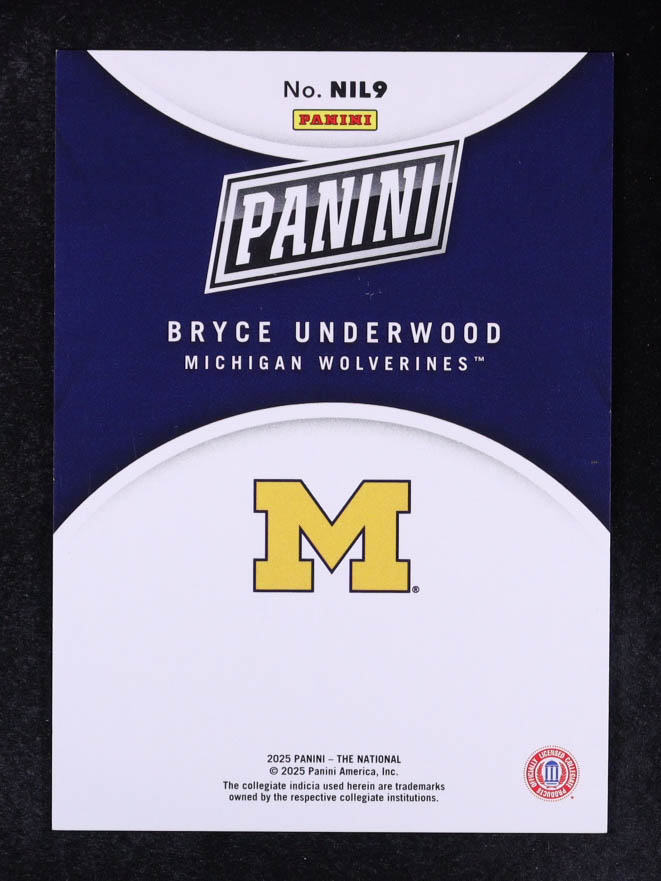 Bryce Underwood 2025 Panini National Convention Feasability Silver Pack VIP NIL Blue #NIL9 #28/50 RC