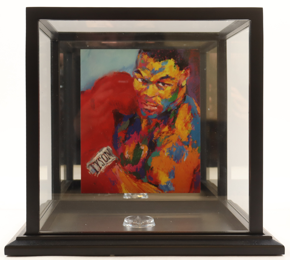 In All New Black Wood And All Glass Mike Tyson LeRoy Neiman Art Back Display Case