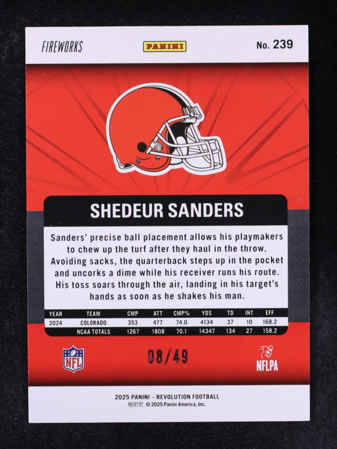 Shedeur Sanders 2025 Panini Revolution Fireworks #239 #08/49 RC