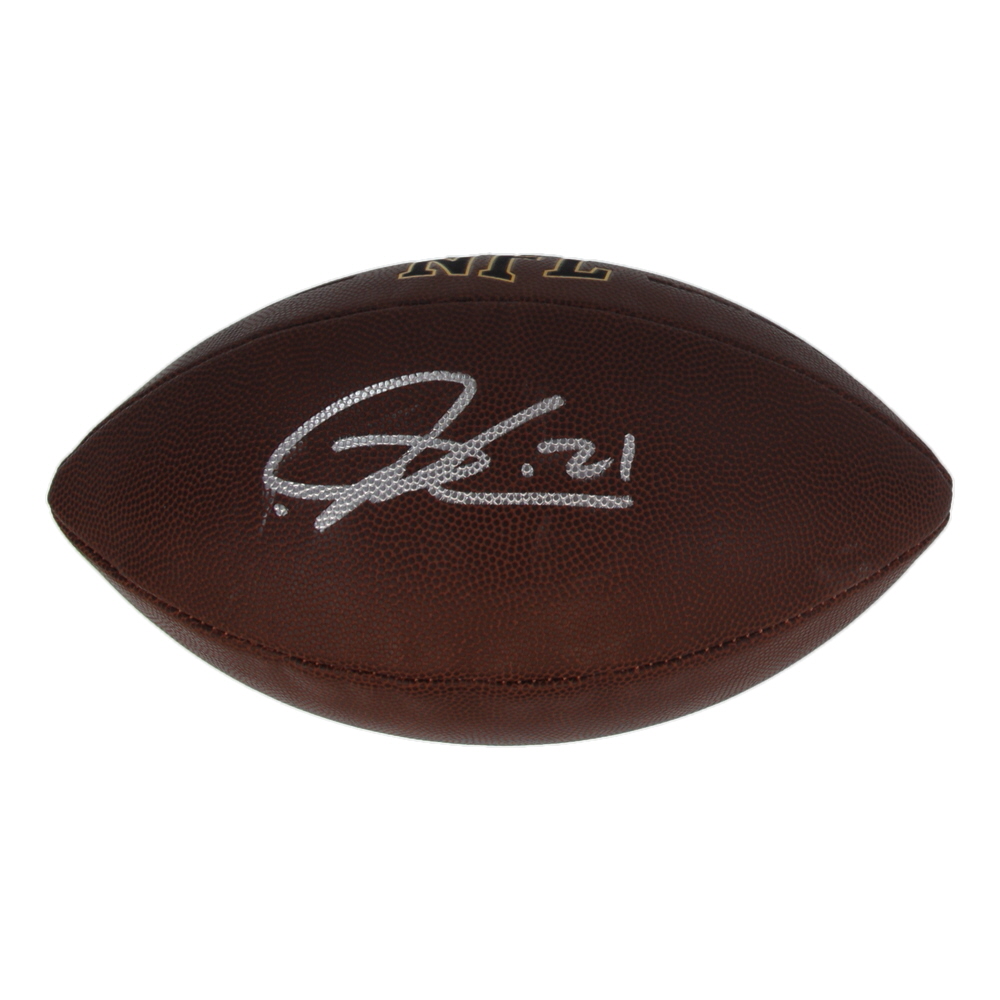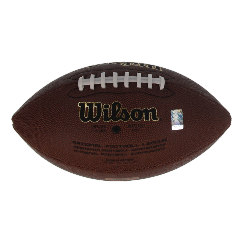Wilson Super Grip Cover NFL football has been hand-signed by Junior Seau (San Diego Chargers, HOF).
