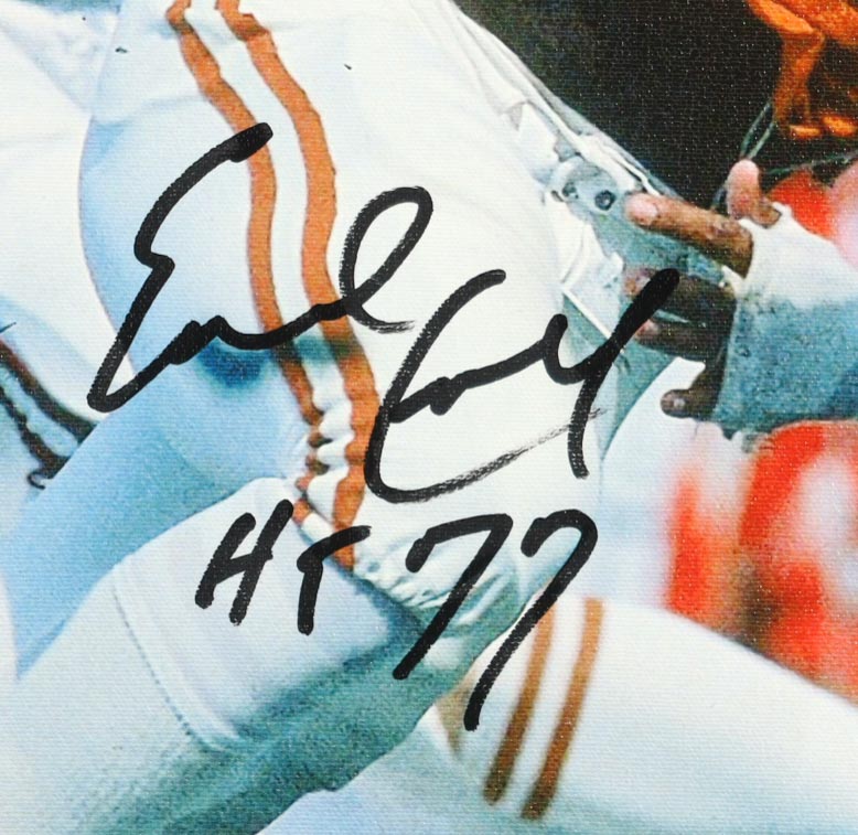 Custom canvas measures approximately 20" x 24" in size and features a serigraph on canvas signed and inscribed by Earl Campbell (HOF).