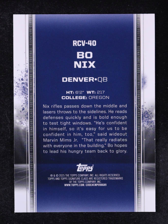 Bo Nix 2024 Topps Signature Class Rookies Chrome Green Refractors #RCV40 #033/150 RC