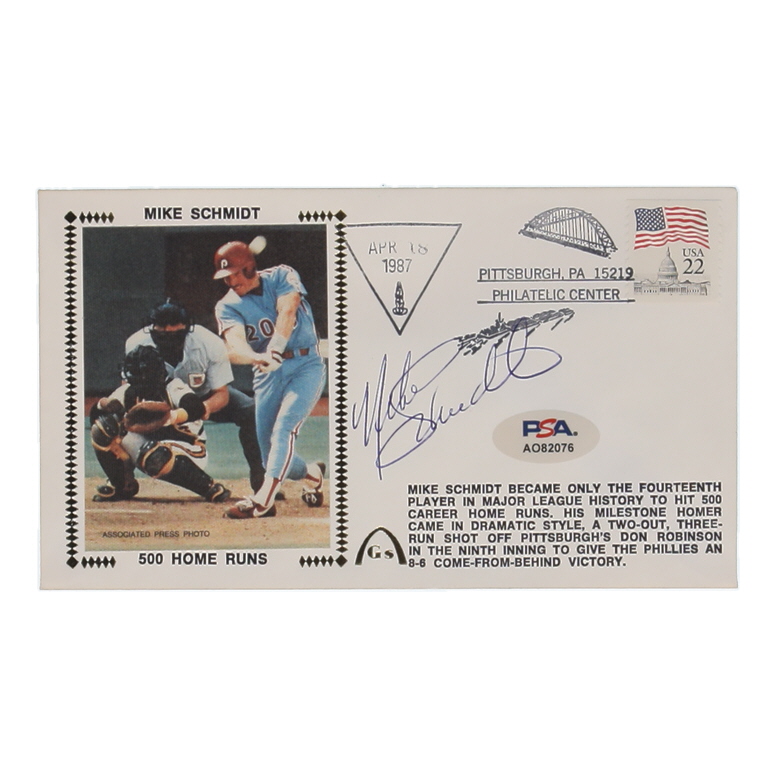 Cachet is dated April 16, 1987. Hand-signed by Mike Schmidt (Philadelphia Phillies, HOF). Please see photos for details regarding the condition of the cachet.