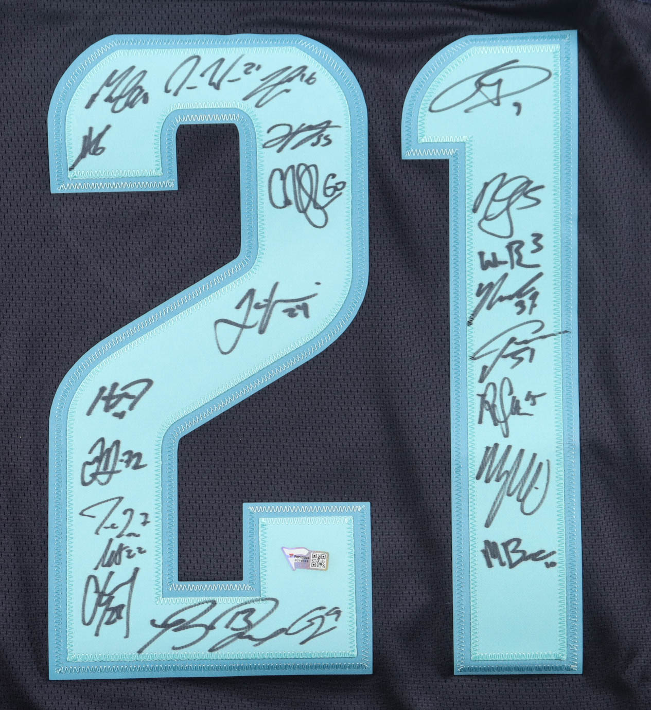 Fanatics authentic jersey with everything sewn on, size XL. Hand-signed by (21) including Ryan Donato, Jordan Eberle, Mason Appleton, Mike Giordano, Brandon Tanev, Cale Fleury, Joonas Donskoi, Adam Larsson, Alex Wennberg, Calle Jarnkrok, Carson Soucy, Chris Driedger, Jamie Oleksiak, Jared McCann, Jeremy Lauzon, Marcus Johansson, Morgan Geekie, Philipp Grubauer, Riley Sheahan, Will Borgen, and Yanni Gourde.