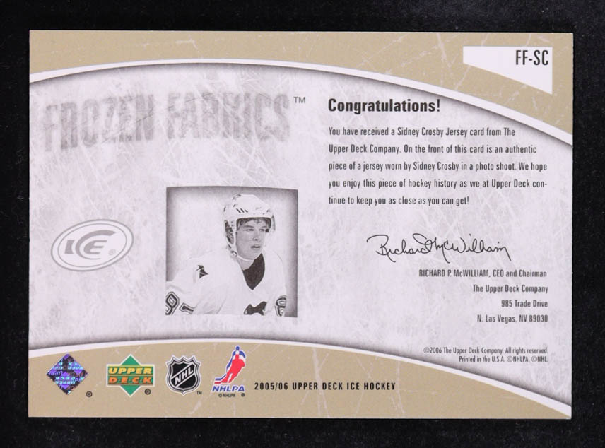 Sidney Crosby 2005-06 Upper Deck Ice Frozen Fabrics #FFSC RC