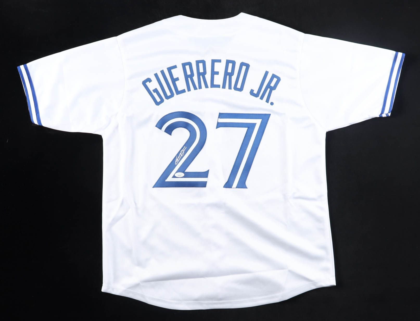 Custom jersey with everything sewn on, size XL. Hand-signed by Vladimir Guerrero Jr.