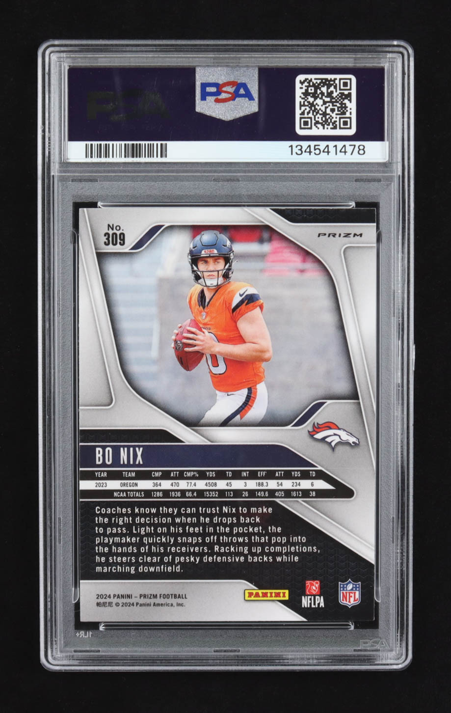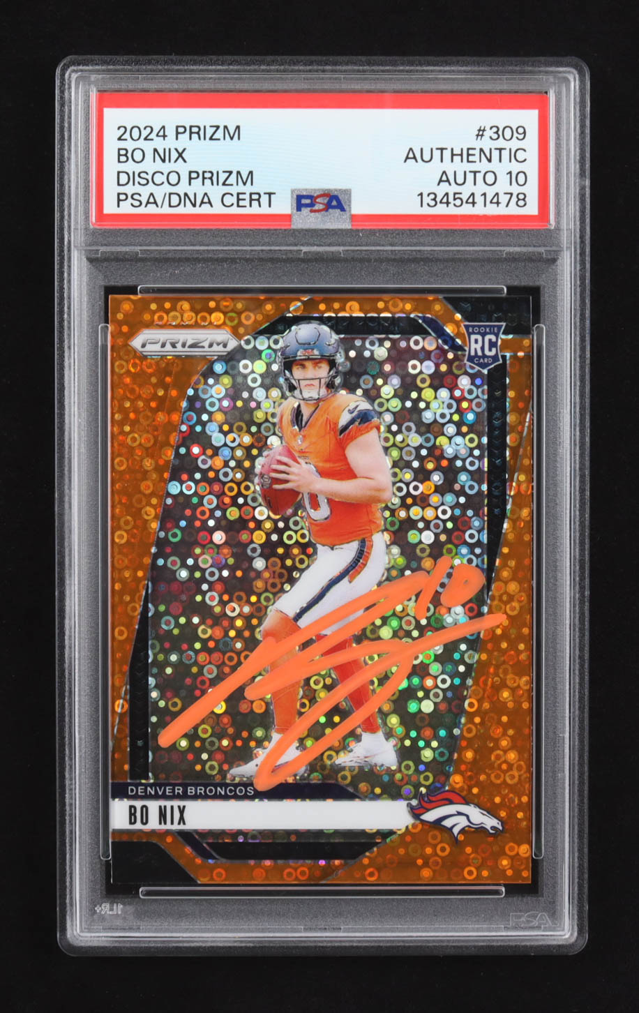 Bo Nix Signed 2024 Panini Prizm Prizms Orange Disco #309 RC (PSA | Auto Grade PSA 10)
