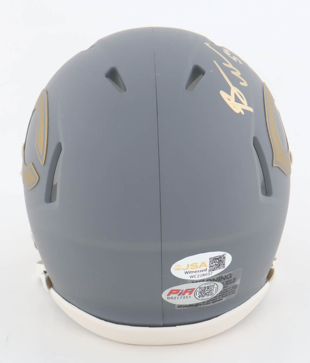 Riddell Chicago Bears Slate Alternate Speed Mini Helmet. Hand-signed and inscribed by Brian Urlacher (HOF).