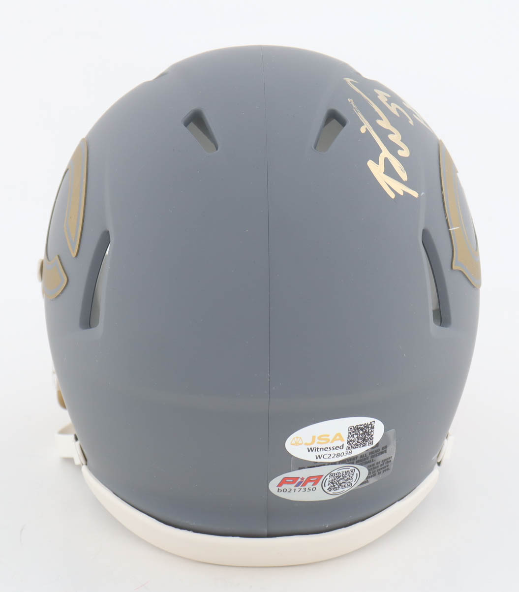 Riddell Chicago Bears Slate Alternate Speed Mini Helmet. Hand-signed and inscribed by Brian Urlacher (HOF).
