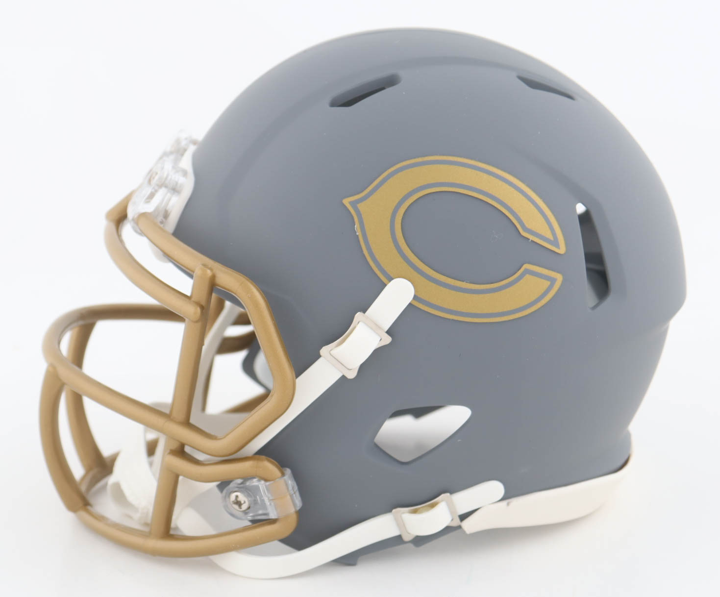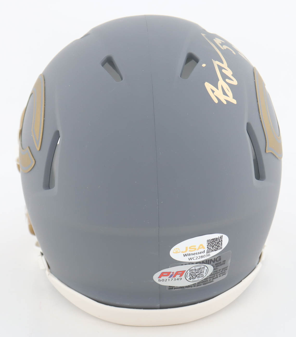 Riddell Chicago Bears Slate Alternate Speed Mini Helmet. Hand-signed and inscribed by Brian Urlacher (HOF).