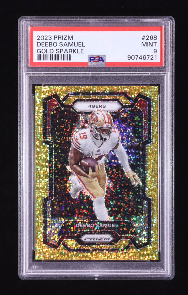 Deebo Samuel 2023 Panini Prizm Prizms Gold Sparkle #268 #08/24 (PSA 9)