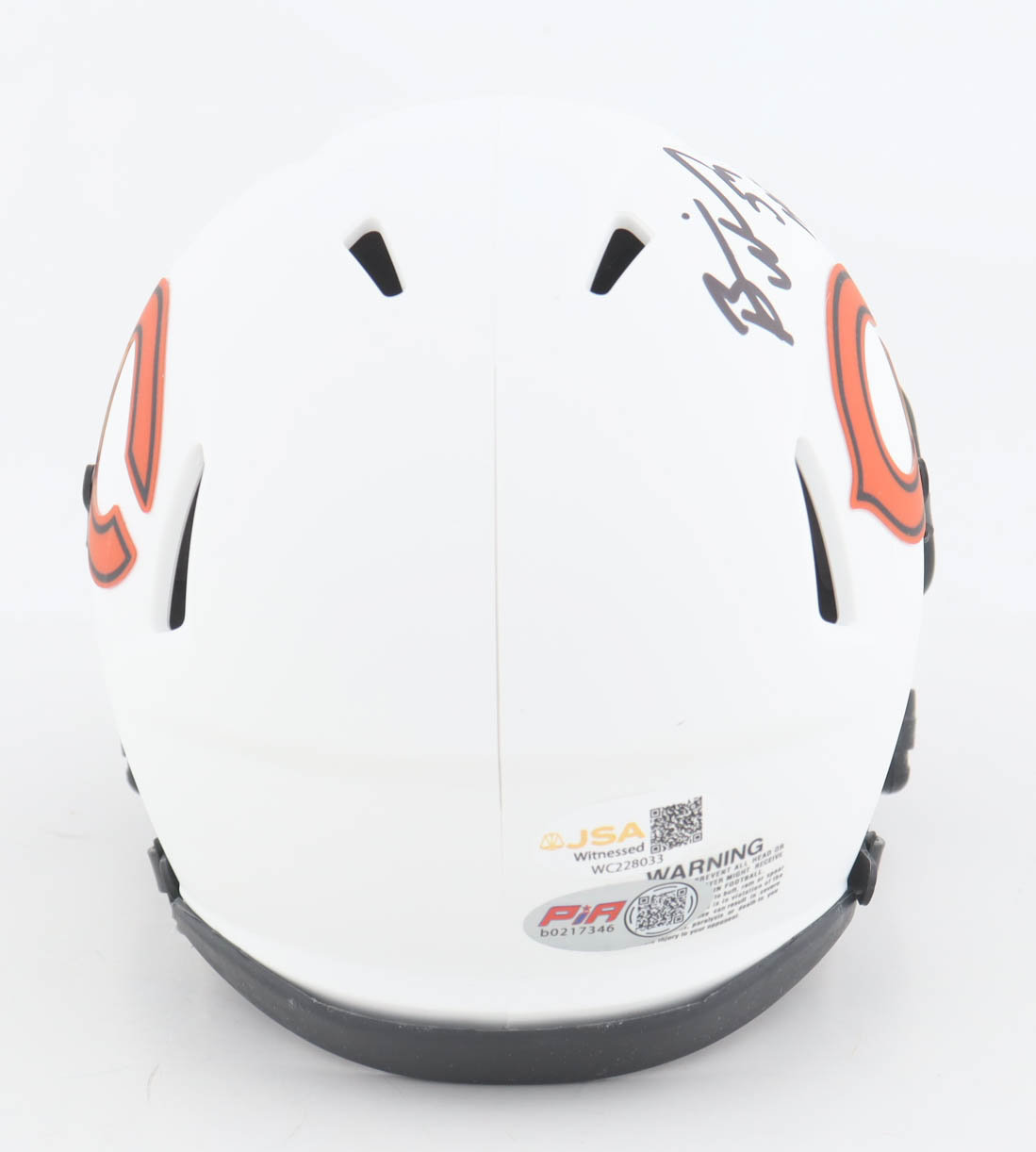 Riddell Chicago Bears Lunar Eclipse Alternate Speed Mini Helmet. Hand-signed and inscribed by Brian Urlacher (HOF).