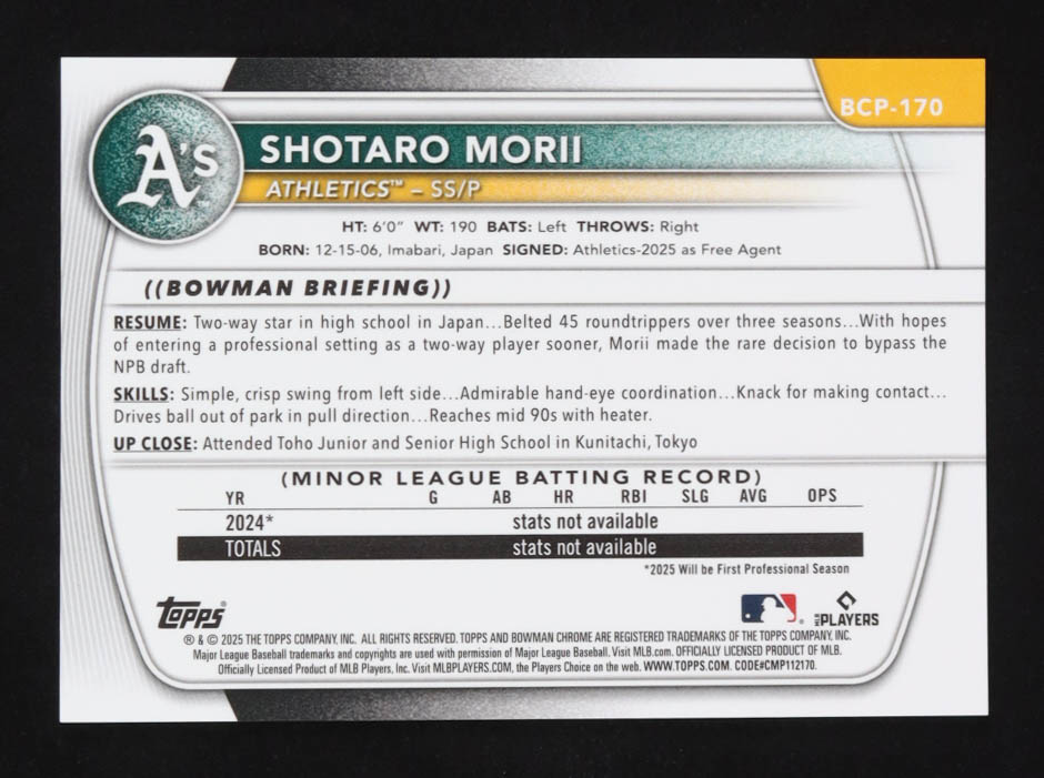Shotaro Morii 2025 Bowman Chrome Prospects Etched in Glass Variations #BCP170 RC