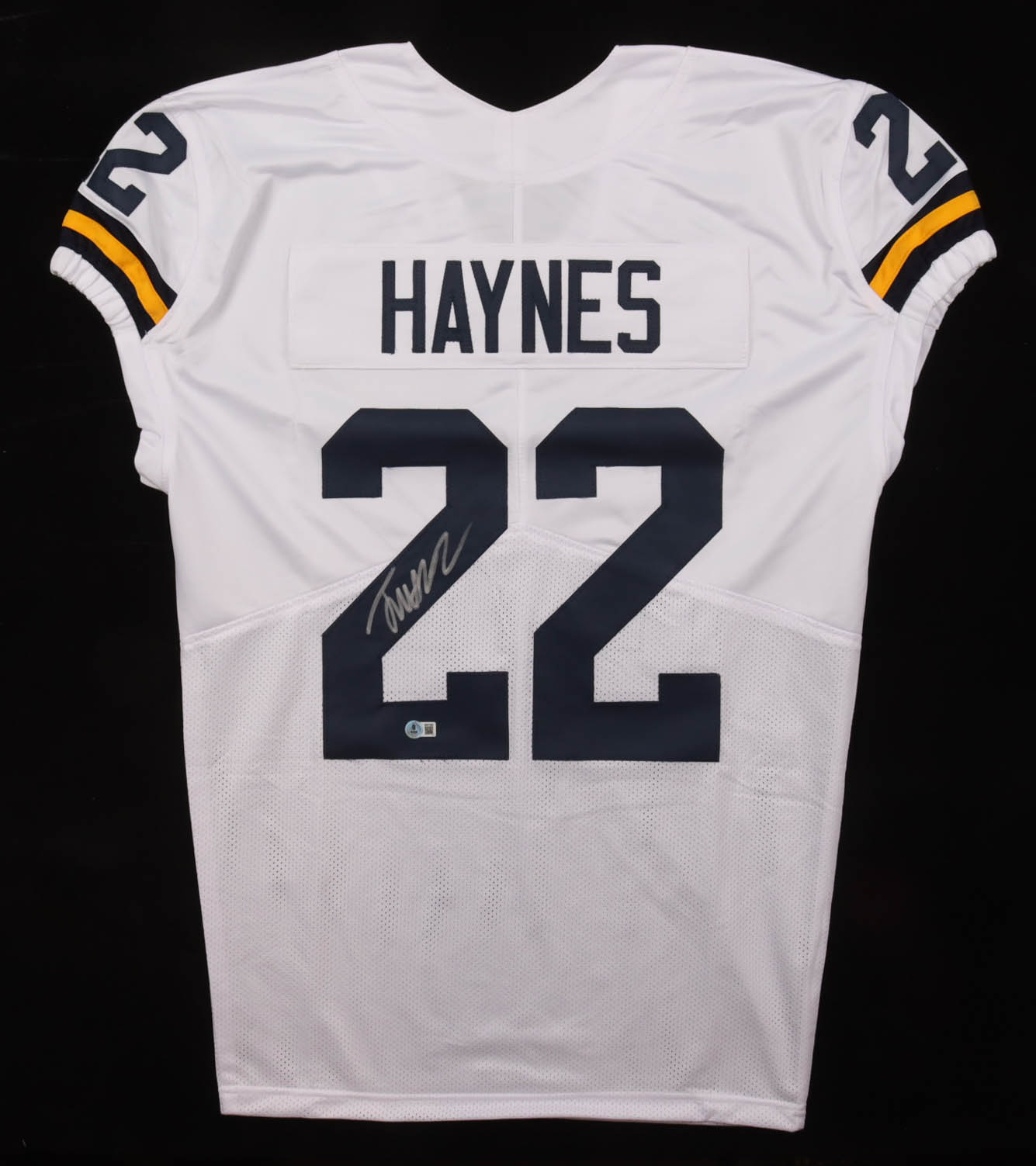 Custom jersey with everything sewn on, size XL. Hand-signed by Justice Haynes (Michigan Wolverines).
