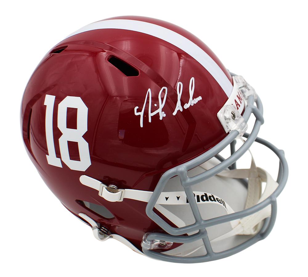 Riddell Alabama Crimson Tide full-size speed replica helmet. Hand-signed by Nick Saban.
