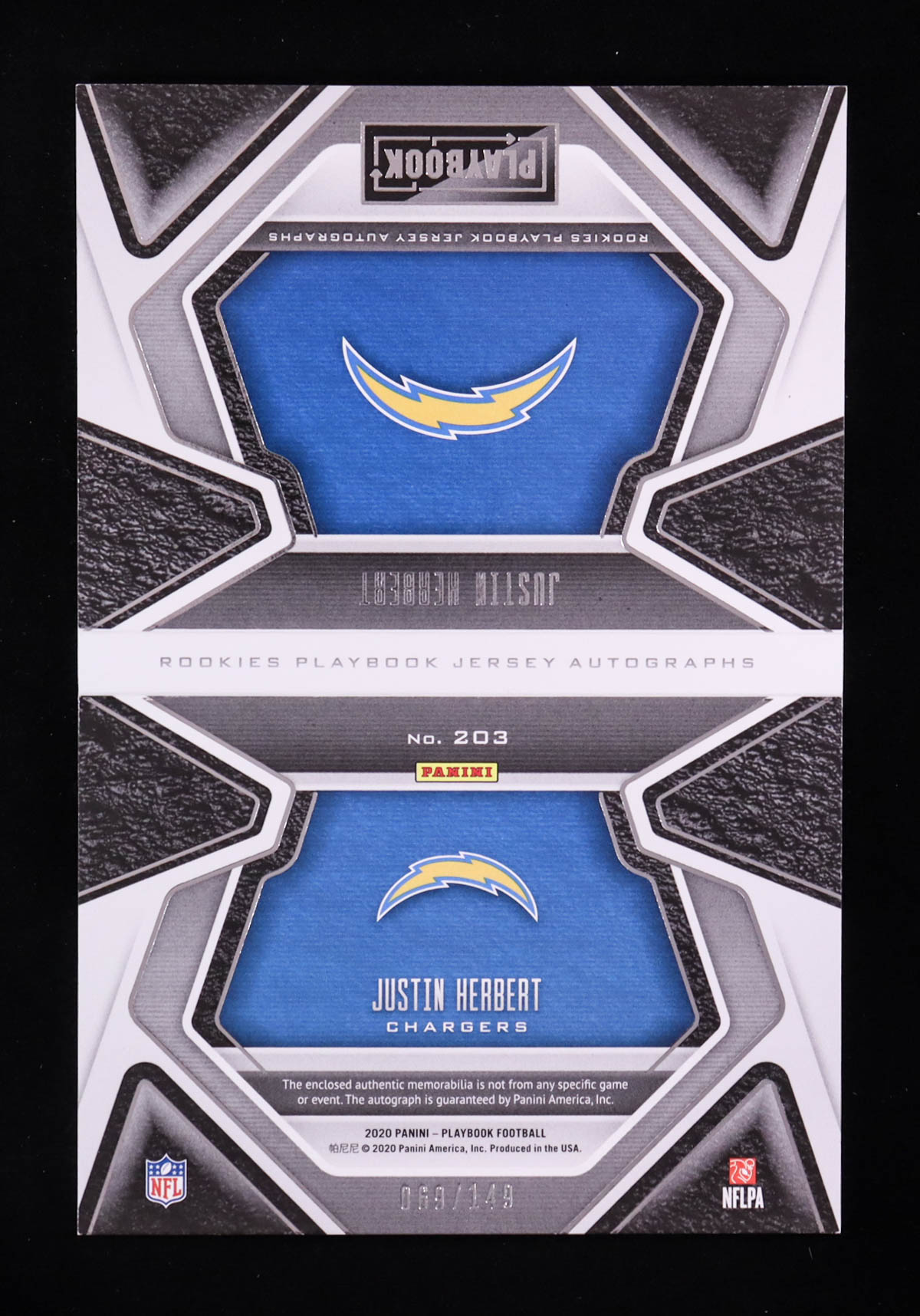 Justin Herbert 2020 Panini Playbook #203 JSY AU RC #069/149