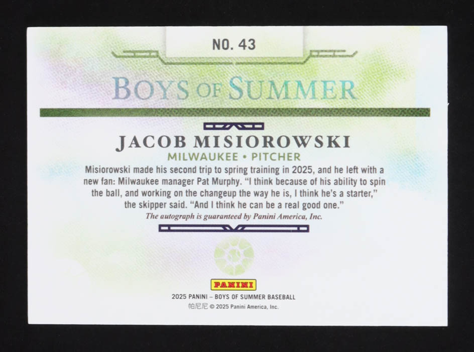 Jacob Misiorowski 2025 Panini Boys of Summer Jumbo Acetate Signatures #43 #047/199 RC