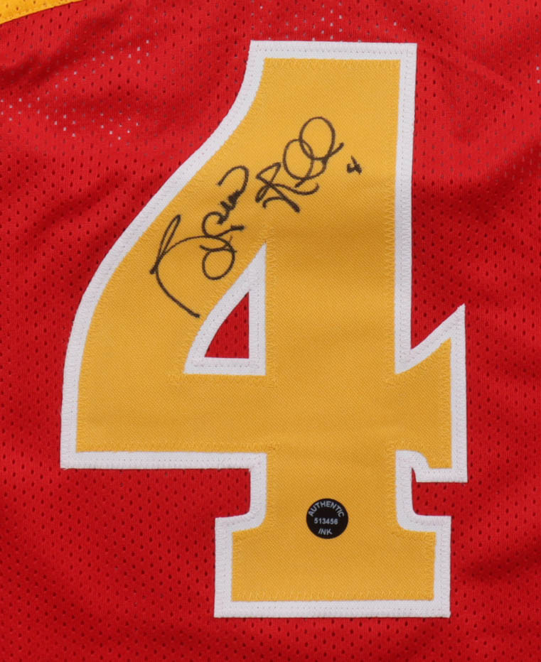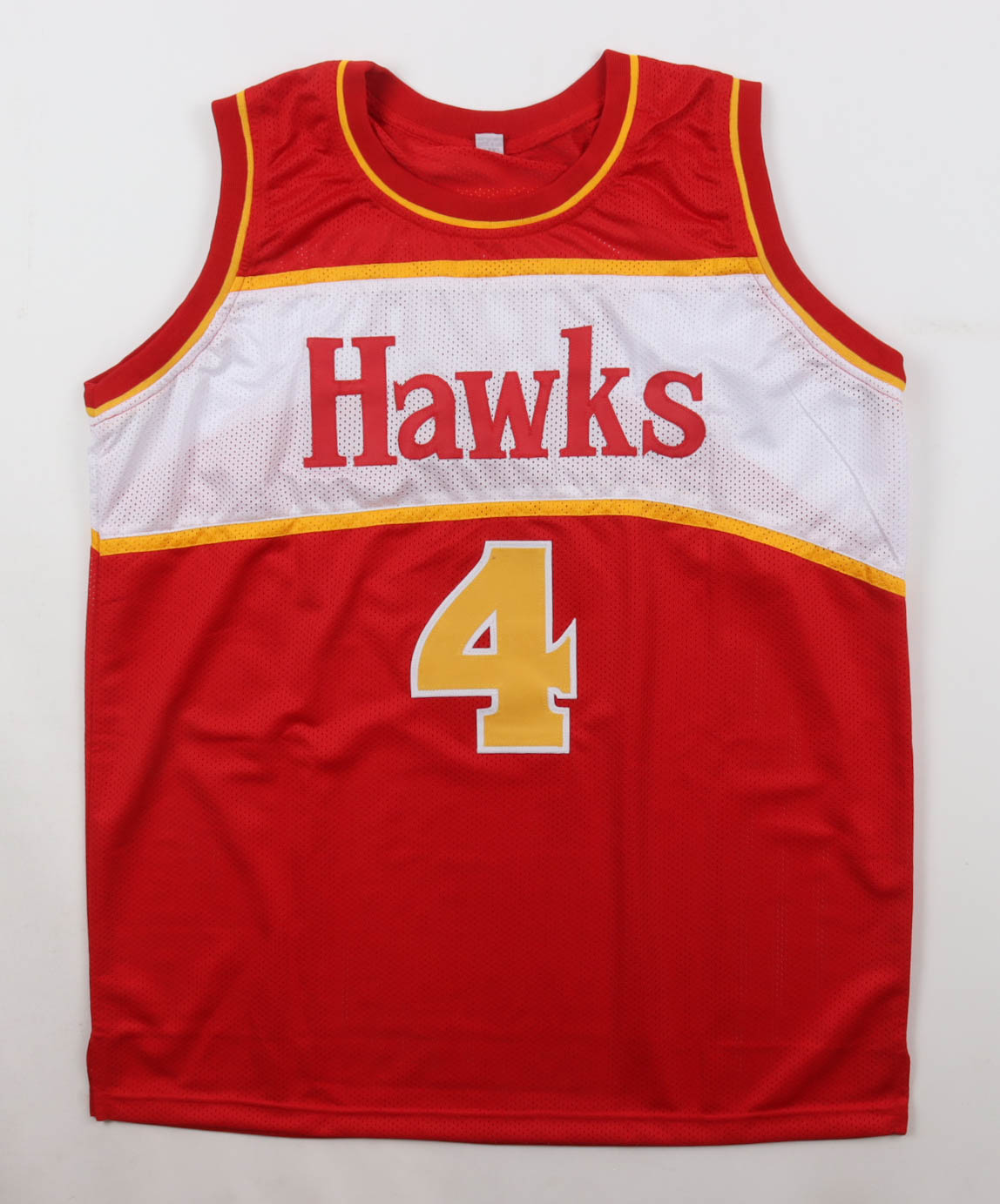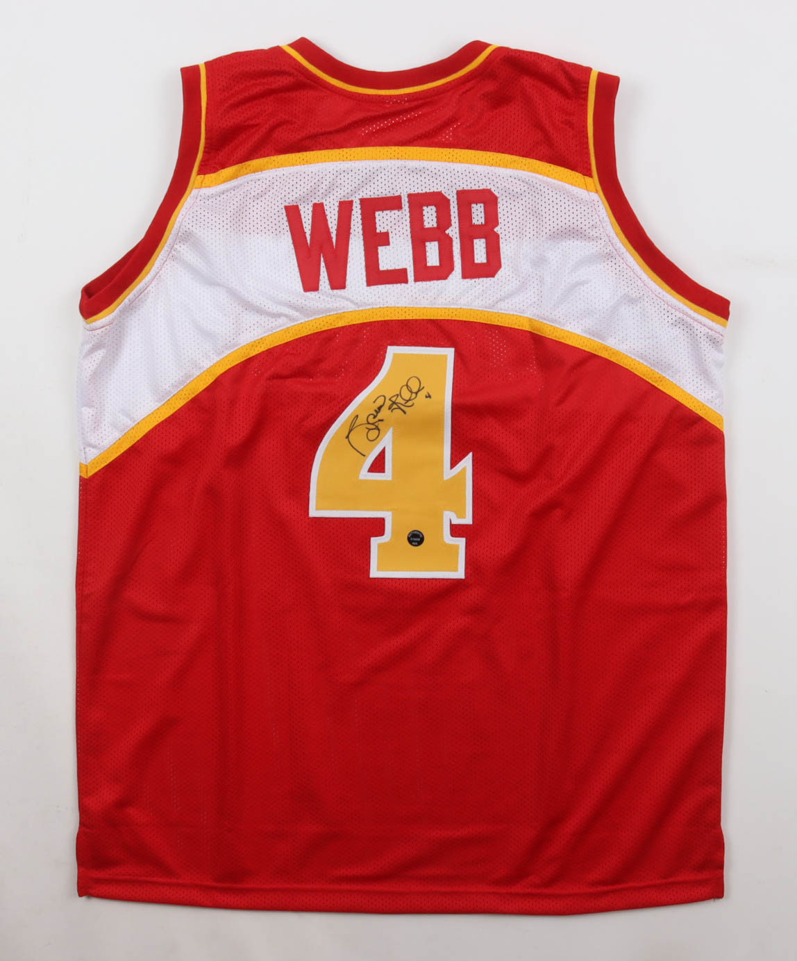Custom jersey with everything sewn on, size XL. Hand-signed by Spud Webb.