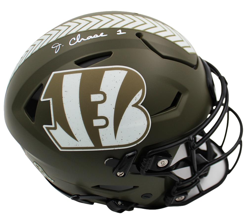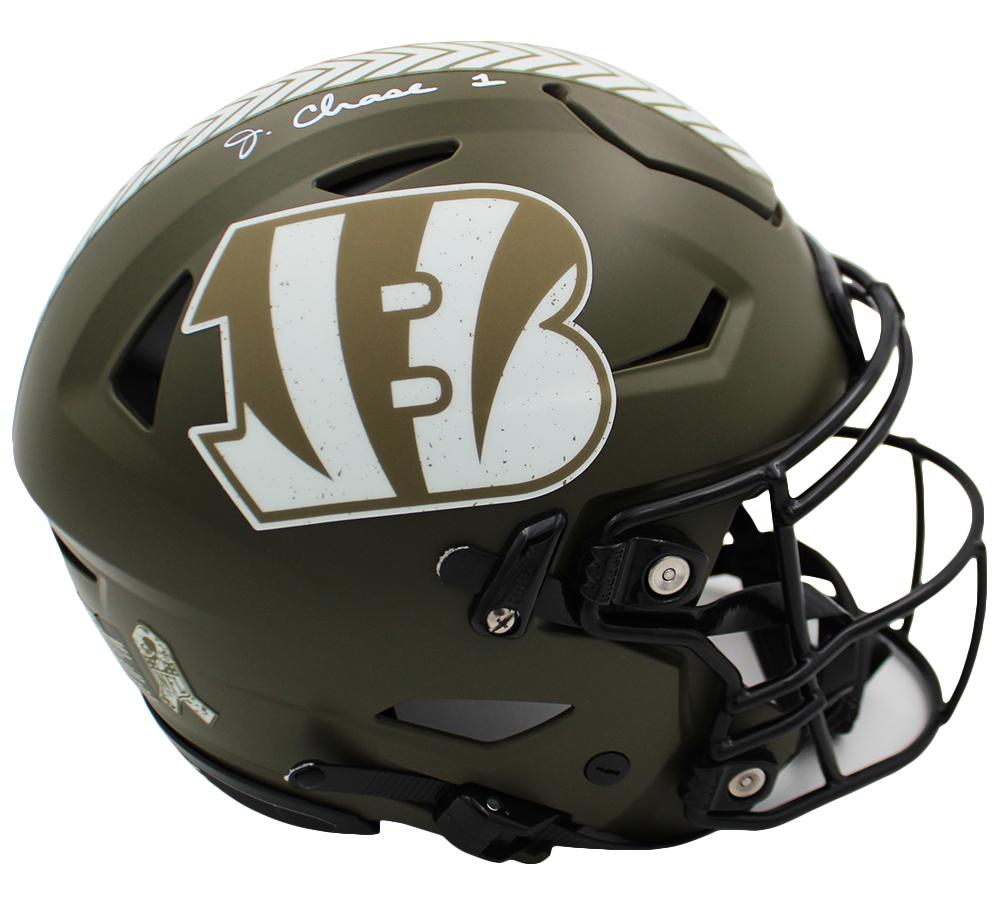 Ja'Marr Chase Signed Bengals Full-Size Authentic On-Field Salute to Service Alternate Speedflex Helmet (Radtke)
