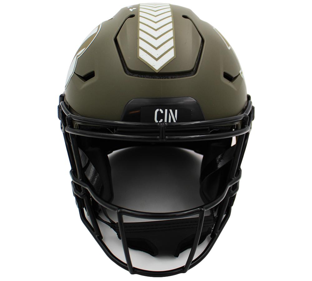 Riddell Cincinnati Bengals Full-Size Authentic On-Field Salute to Service Alternate Speedflex Helmet. Hand-signed by Ja'Marr Chase.