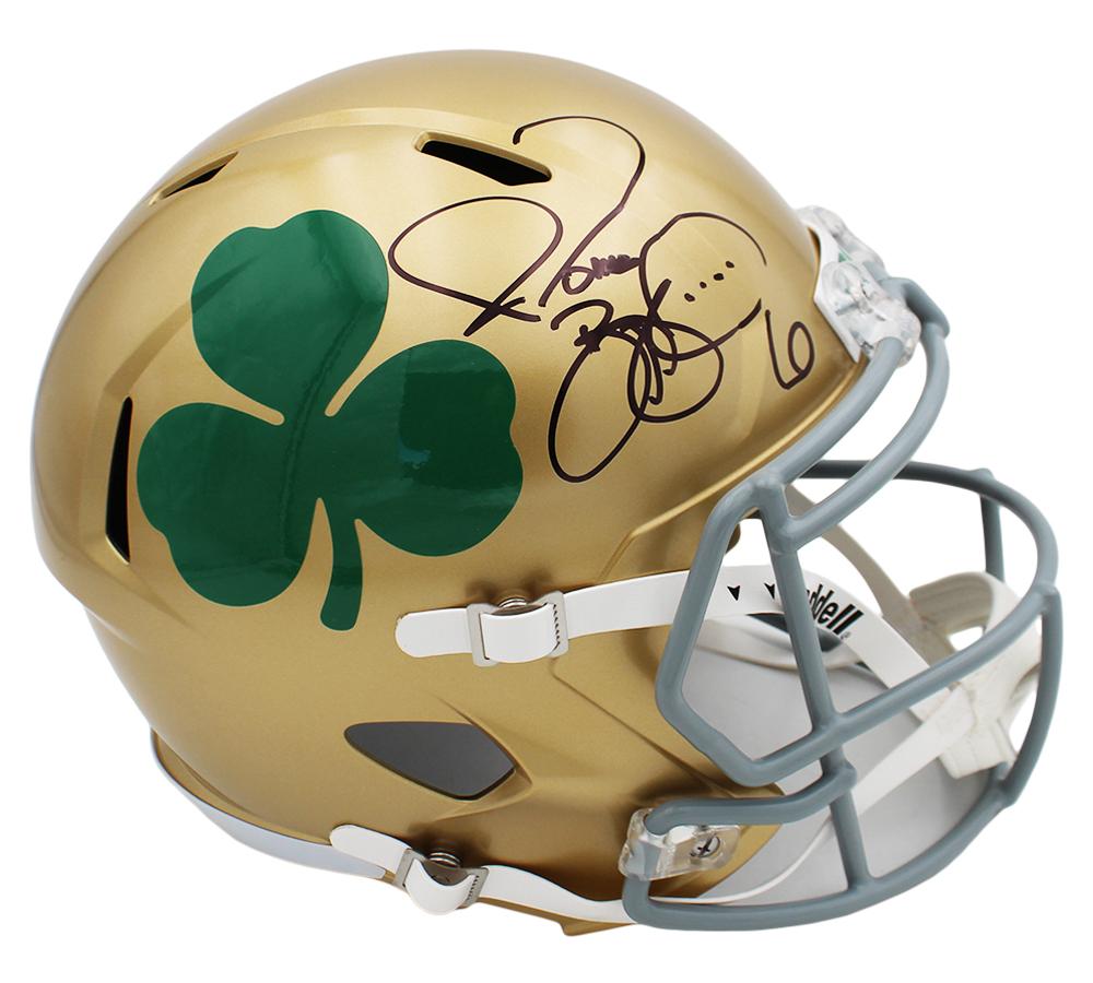 Riddell Notre Dame Fighting Irish full-size speed replica helmet. Hand-signed by Jerome Bettis (HOF).