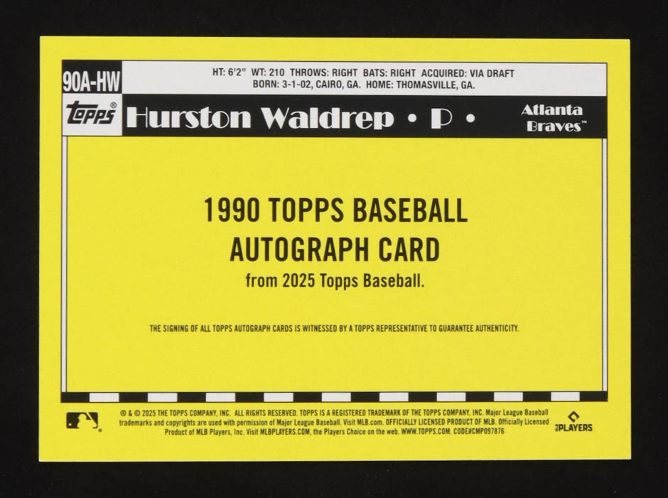 Hurston Waldrep 2025 Topps '90 Topps Autographs #90AHW RC